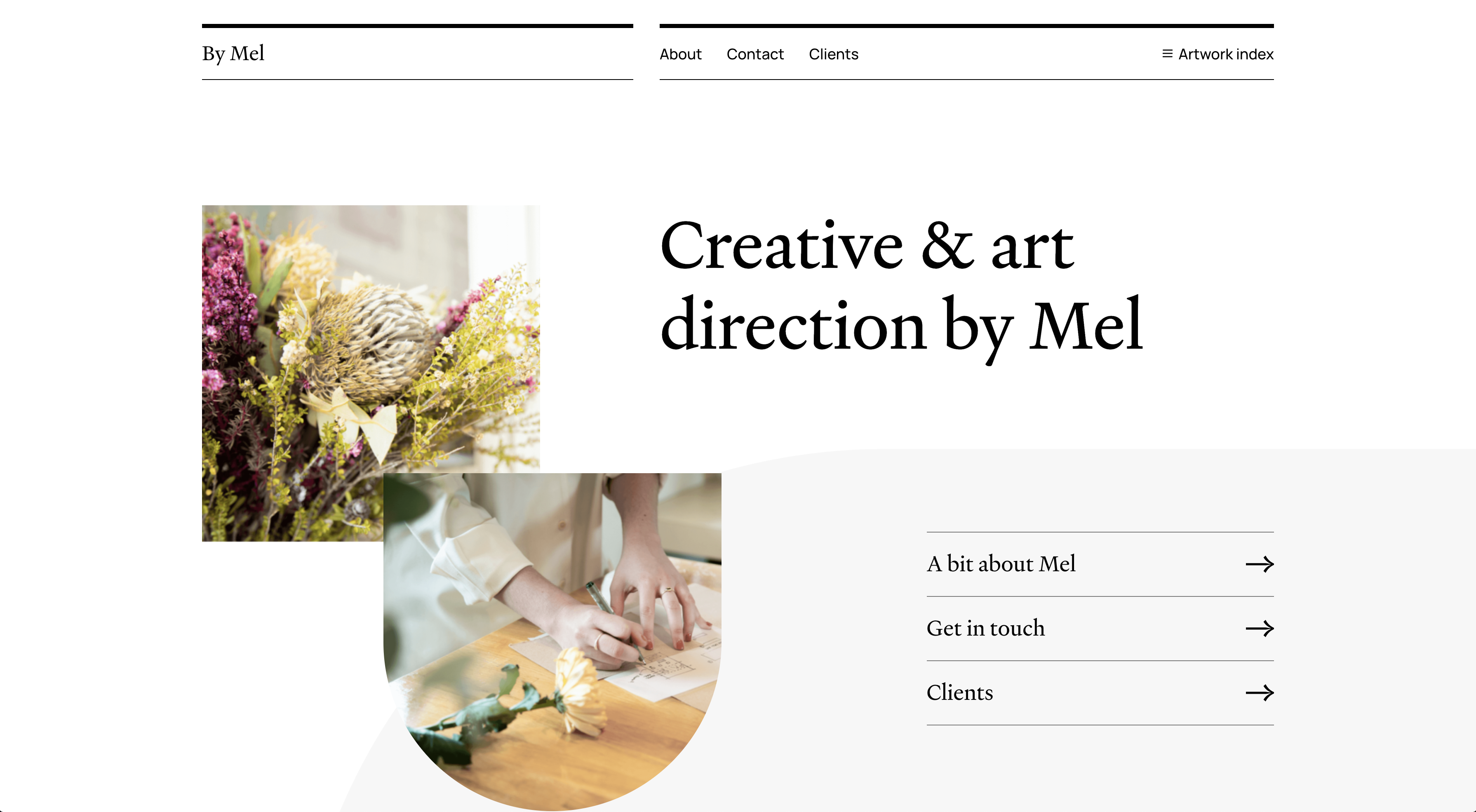 디자이너의 포트폴리오 사이트로 라인과 이미지, 명조체를 적절히 활용하여 무드를 표현했습니다.