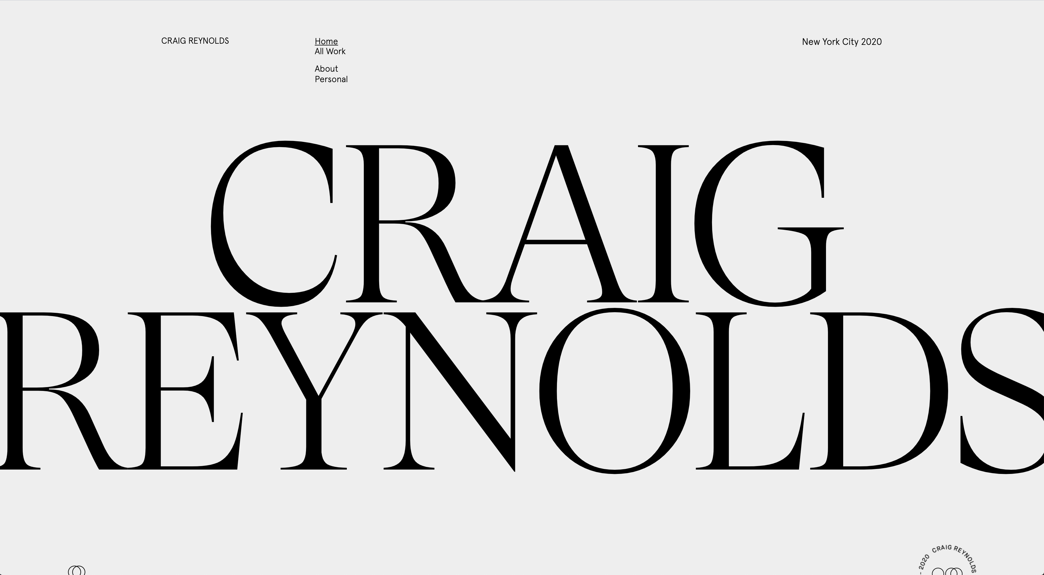뉴욕 출신 Craig Reynolds 라는 디자이너의 포트폴리오 사이트로 마우스 오버 시 타이포 디자인 위로 이미지가 커서에 따라 움직이며 나타나는 효과가 인상적 입니다. 명조체와 이미지 페이드 효과가 분위기 있는 웹 디자인을 보여주고 있고, 타이틀 hover 시 해당하는 콘텐츠를 이미지로 보여주어 더욱 직관적입니다.