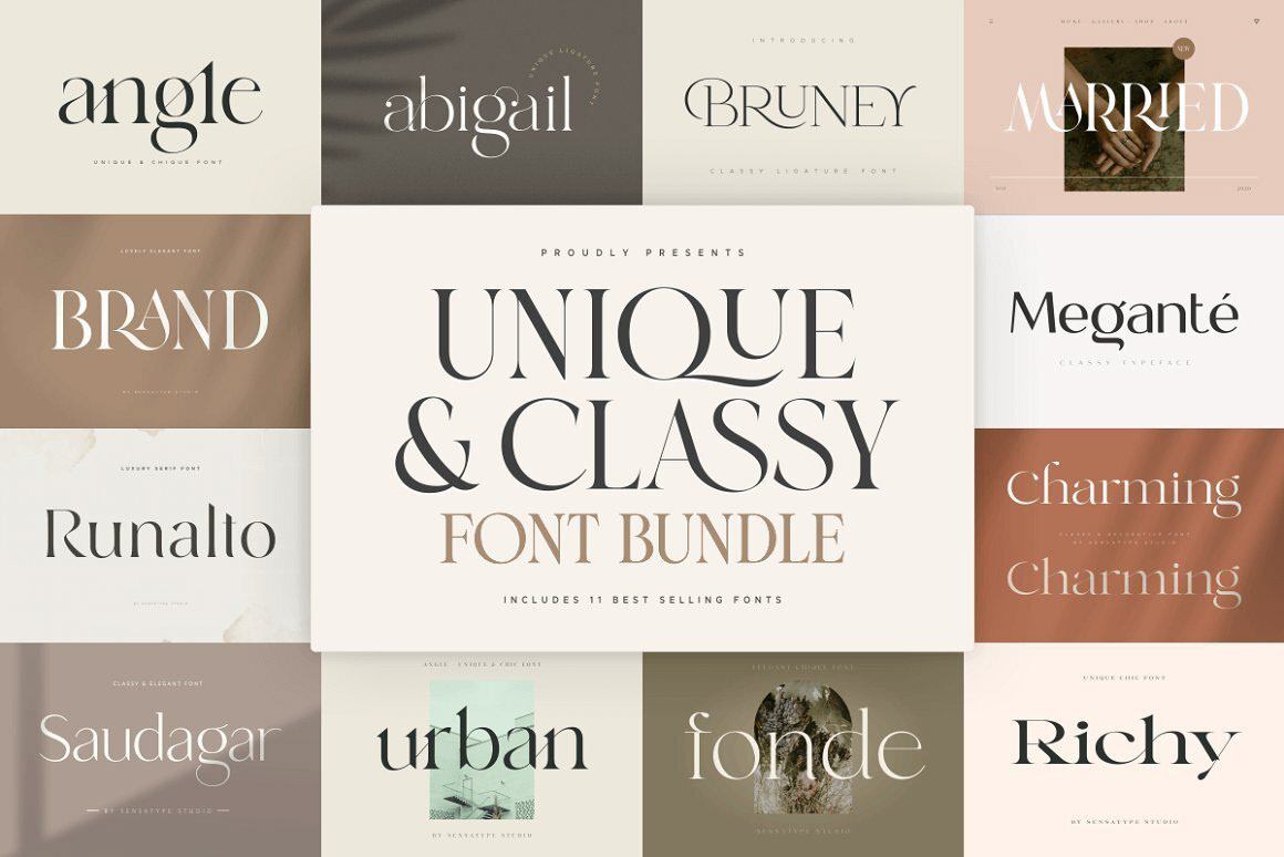 섬세한 라인과 곡선의 세리프 폰트는 고급스러운 느낌을 주기에 충분한 것 같습니다.