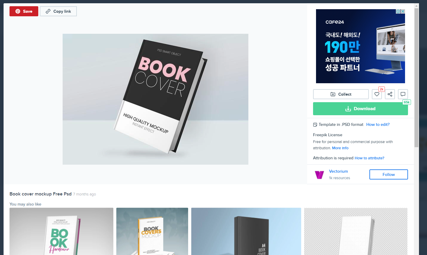 저는 Vectorium이라는 작가분의 북커버 목업 파일을 선택했어요.