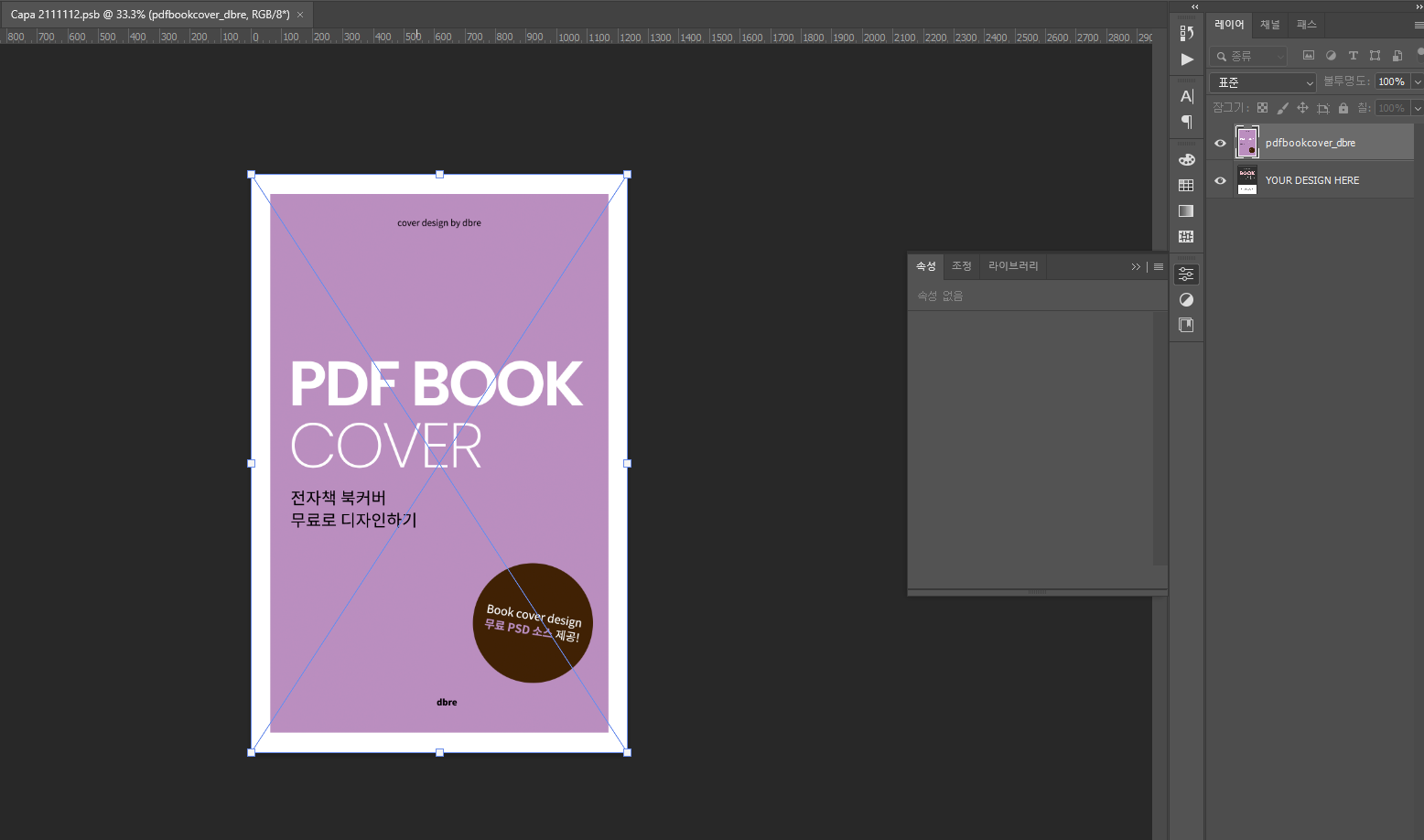 여기에서 텍스트와 도형 등을 추가하여 디자인을 진행해도 되고, 동일한 사이즈로 별도의 파일을 만들어 따로 커버 디자인을 진행한 뒤 해당 레이어에 붙여넣기 해도 됩니다.