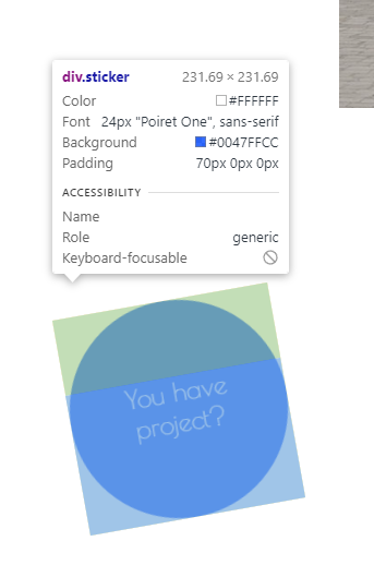 위 이미지에서 background 를 보시면 #0047FFCC 라고 8자리로 되어있는 것을 보실 수 있는데요, 보통 우리가 알고있는 컬러 지정 css 코드는 hex 코드 6자리와 rgba(255,255,255,0.8) 과 같은 rgb 형태입니다.