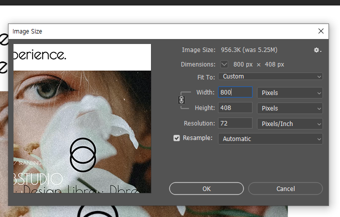 Ctrl + Alt + i 단축키를 사용하여 이미지 사이즈를 조정합니다.