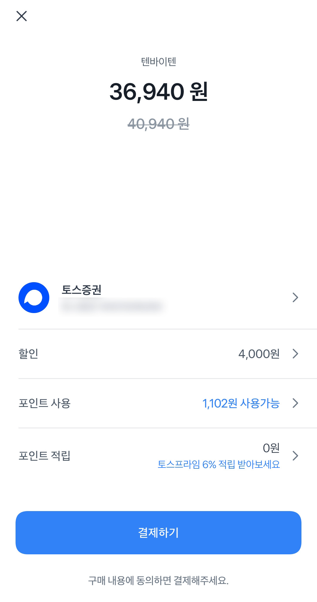 토스페이먼츠로 결제 시 연계 제공되는 할인 혜택과 함께 놀라웠던 것은, 토스 포인트를 사용하여 할인받을 수 있다는 점이었는데요.