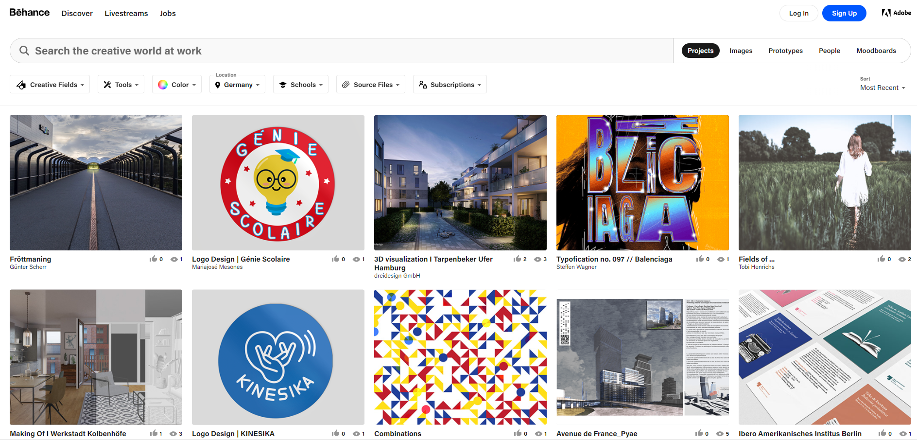 제가 캡처한 이미지만으로 단정짓기는 어려우나, 각 국가에서 실시간으로 최근에 업로드 된 디자이너들의 작품을 볼 수 있다는 것으로도 큰 의의가 있을 것 같습니다. 또한 전체적인 리스트 스크롤링을 하다 보면 대략적인 국가별 트렌드도 눈에 들어오지 않을까 합니다.