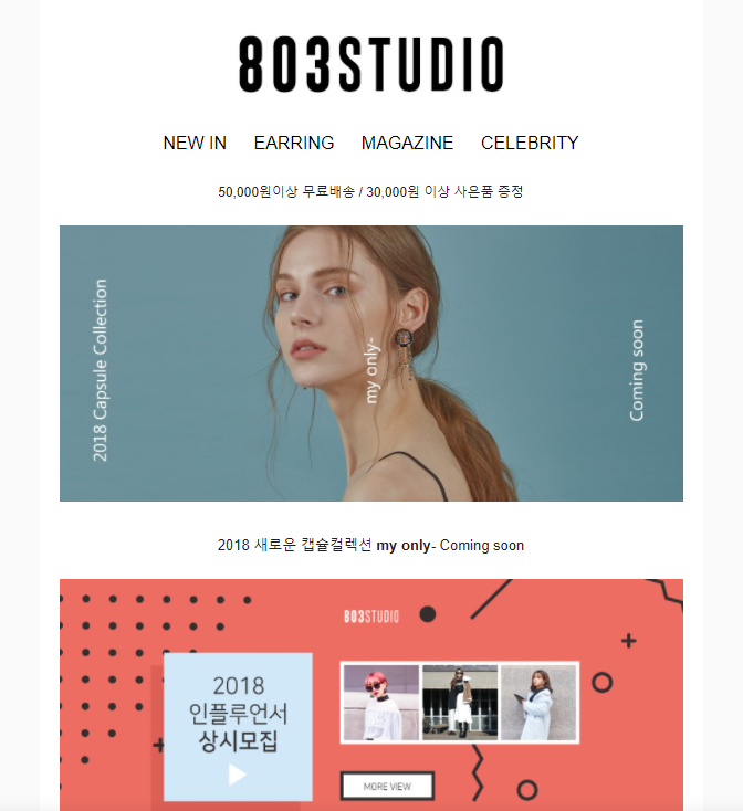 자동 발송용 이메일의 템플릿 디자인도 구독용 이메일 템플릿의 방식처럼 웹사이트의 카테고리 링크를 넣어 미니 웹사이트처럼 제작하면 고객을 대상으로 브랜드 가치를 높이는 데에 도움이 됩니다.