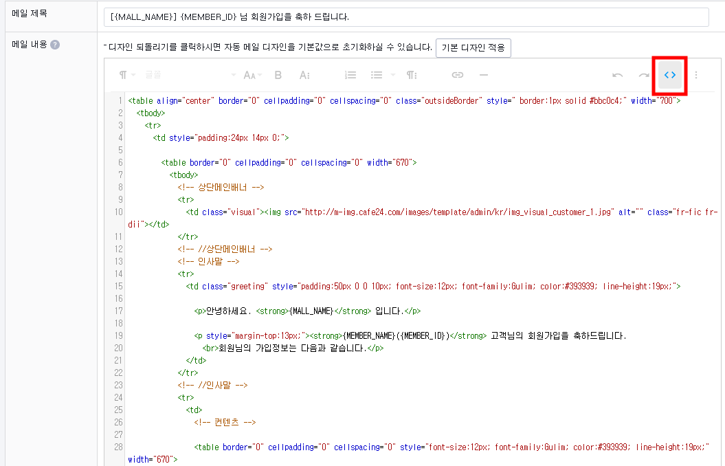 cafe24 쇼핑몰에서 자동 발송 메일 레이아웃 디자인 변경하기