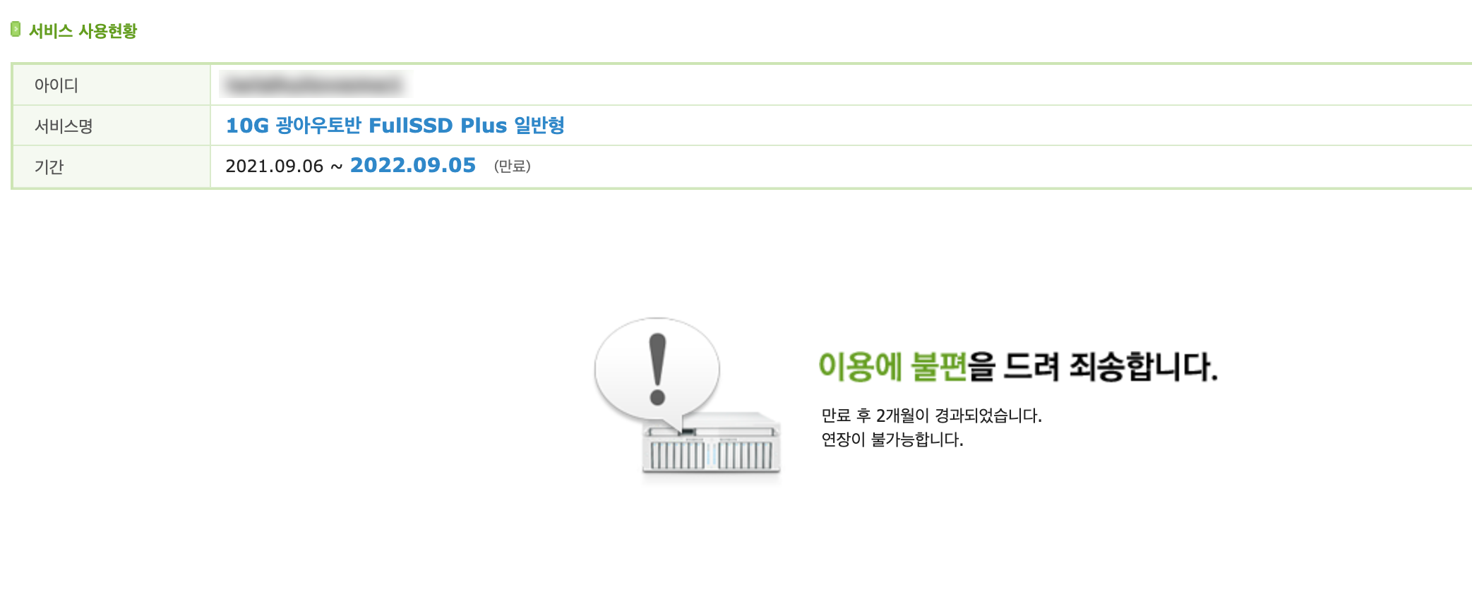 사용하던 cafe24 호스팅 만료 후 2개월이 지나 연장이 불가하다면?