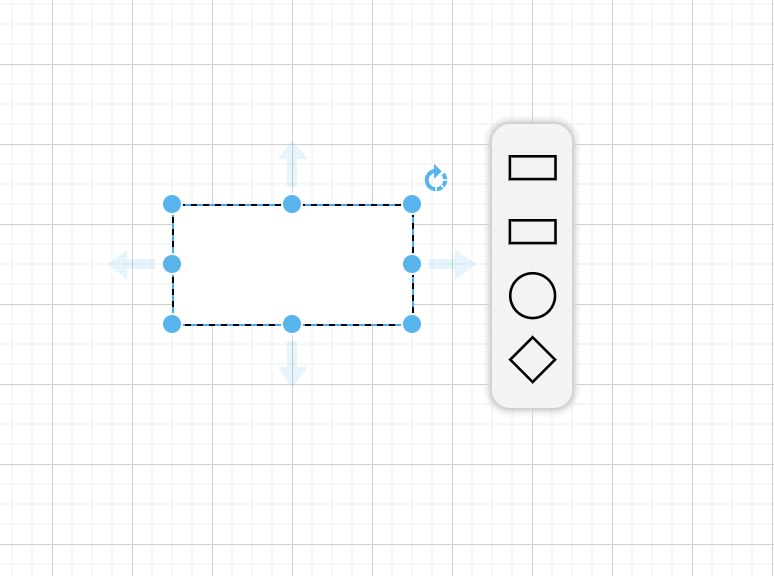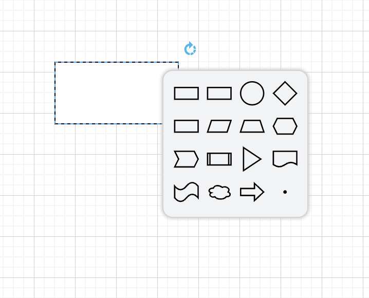도형 생성 후 도형이 선택된 상태에서 사방의 화살표에 마우스 오버 시 다음 이어서 그릴 도형을 선택할 수 있는 팝업이 나타납니다.