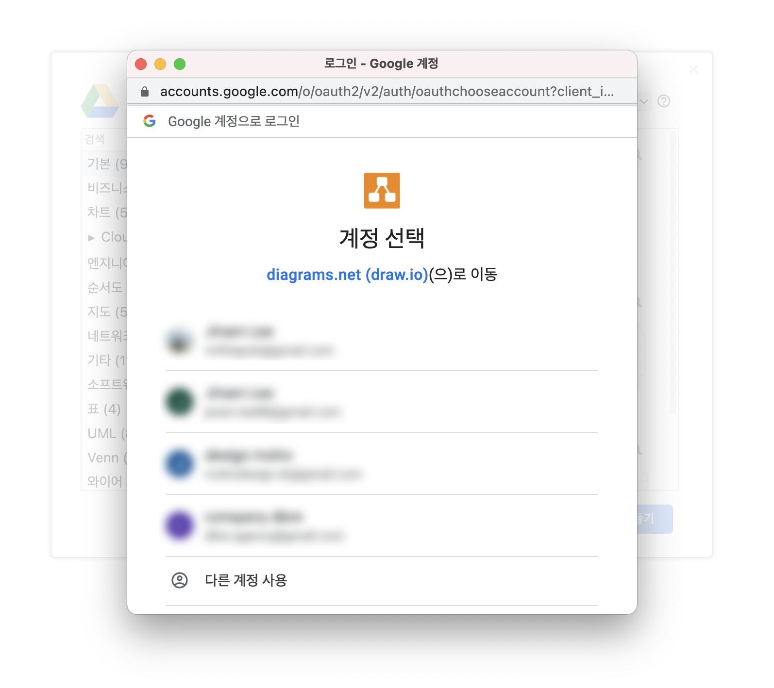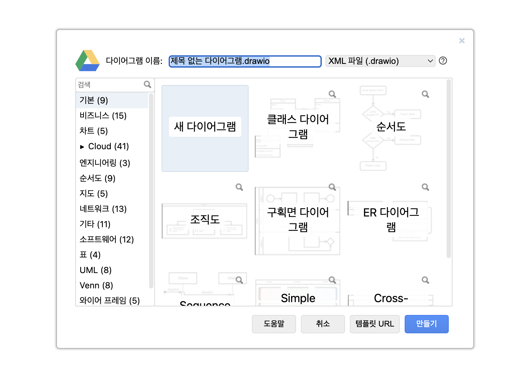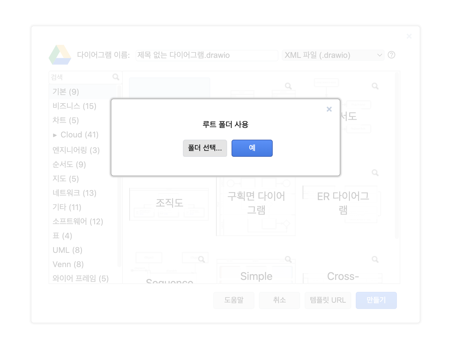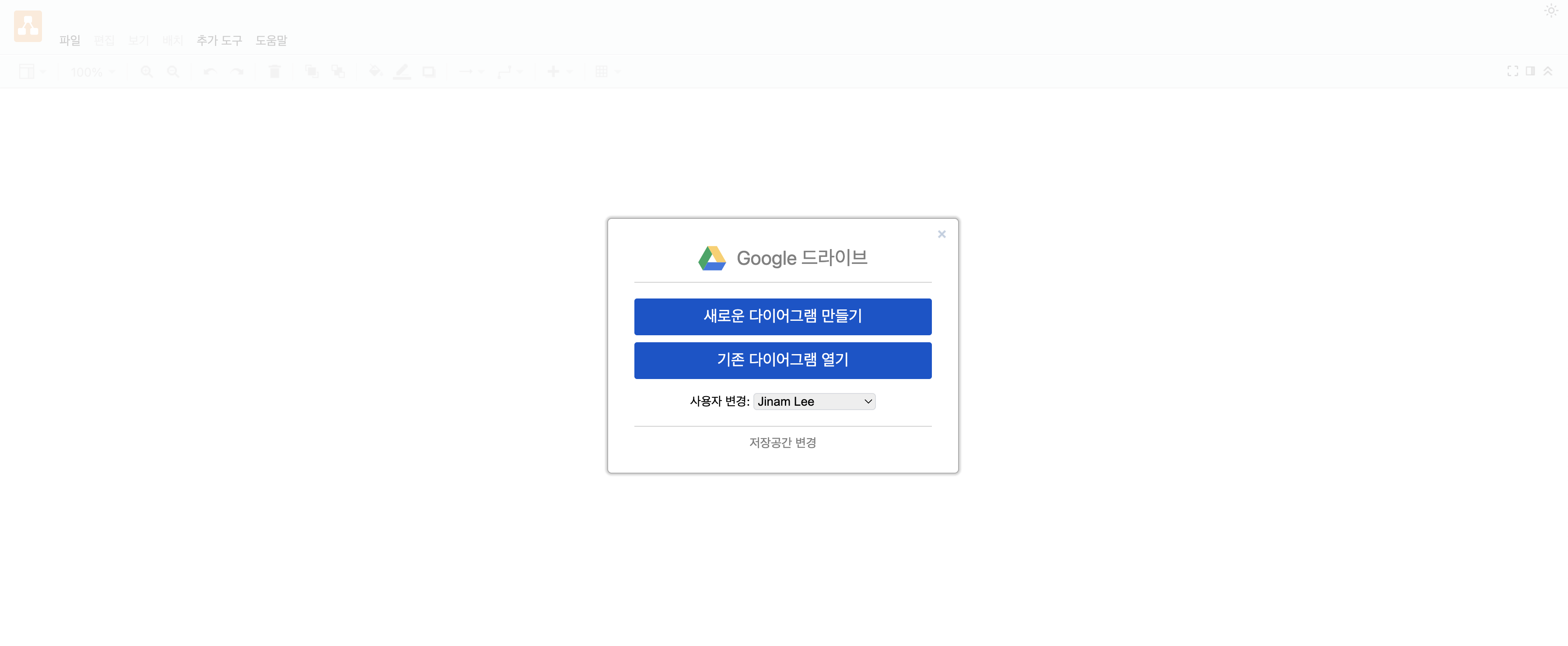 구글 계정은 연동하면 드라이브에 새로운 다이어그램이 생성됩니다.