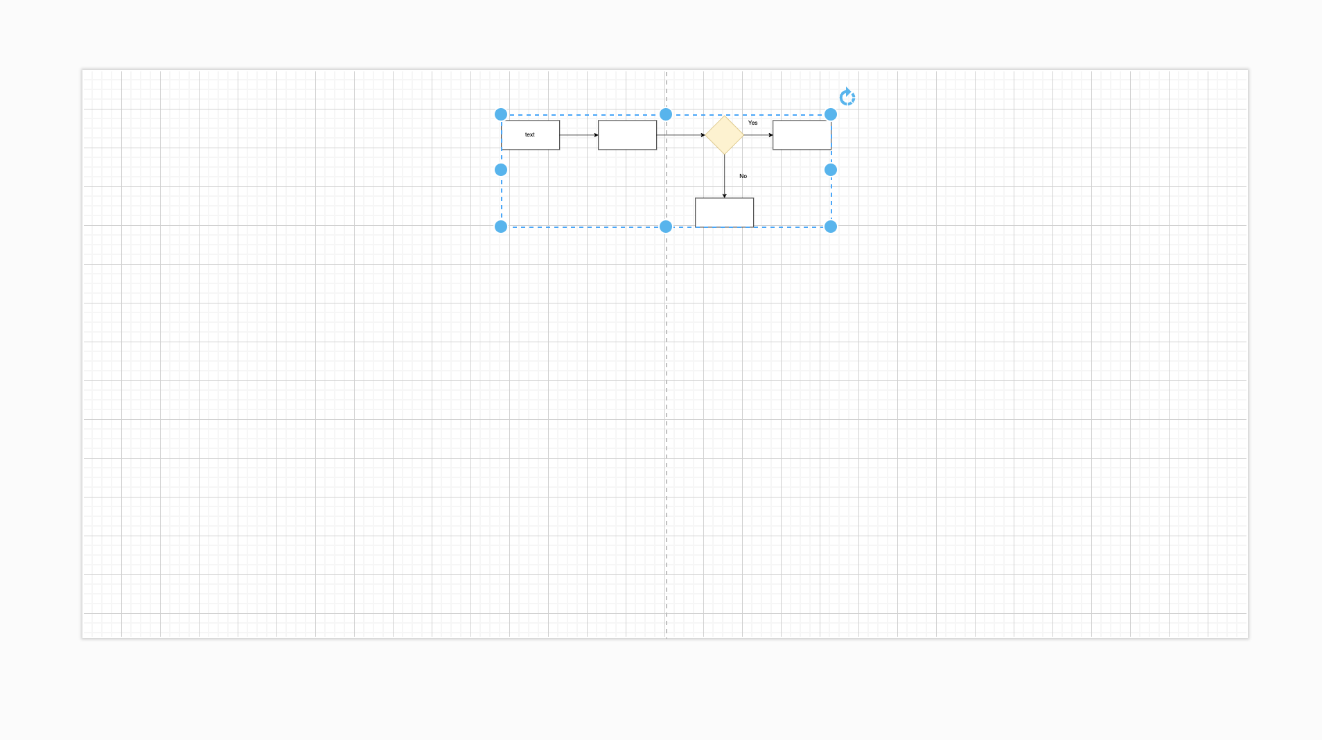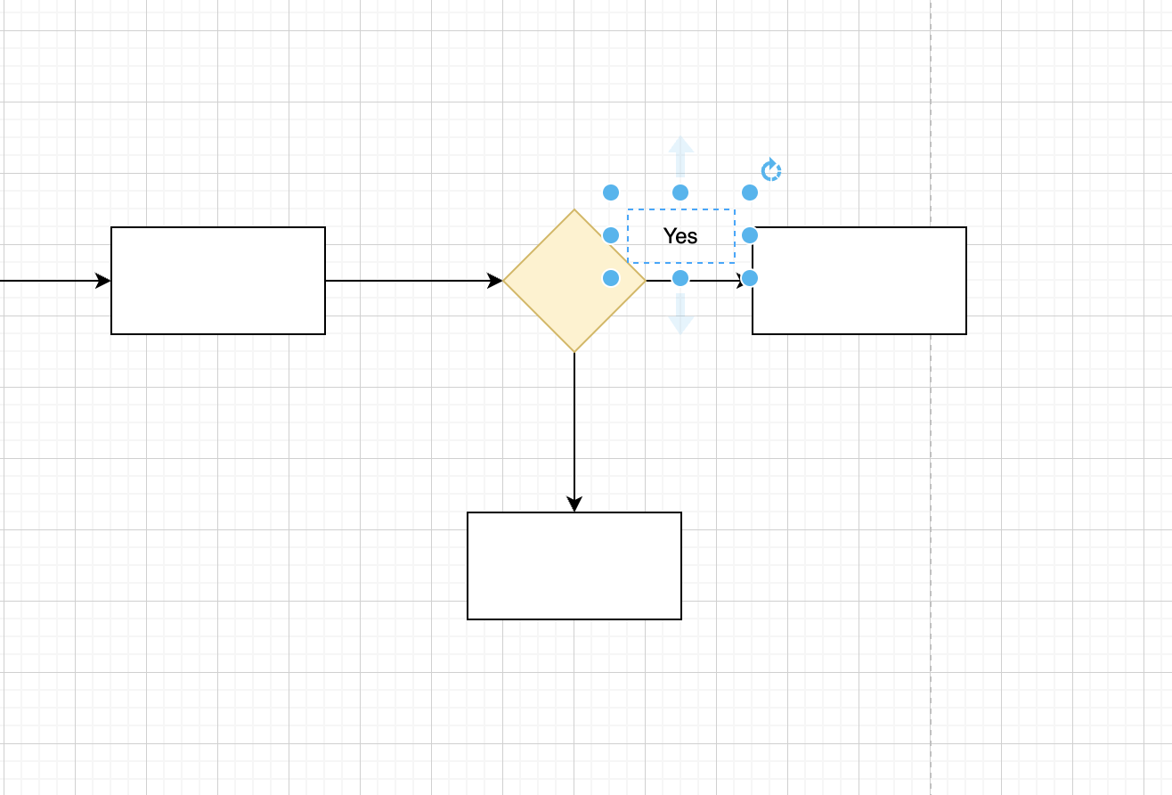 Validation 플로우의 경우 yes 와 no 의 케이스를 구분하여 프로세스를 생서하는데, 좌측 툴박스 내 텍스트 기능을 활용하여 아트보드에 자유롭게 텍스트 입력 또한 가능합니다.