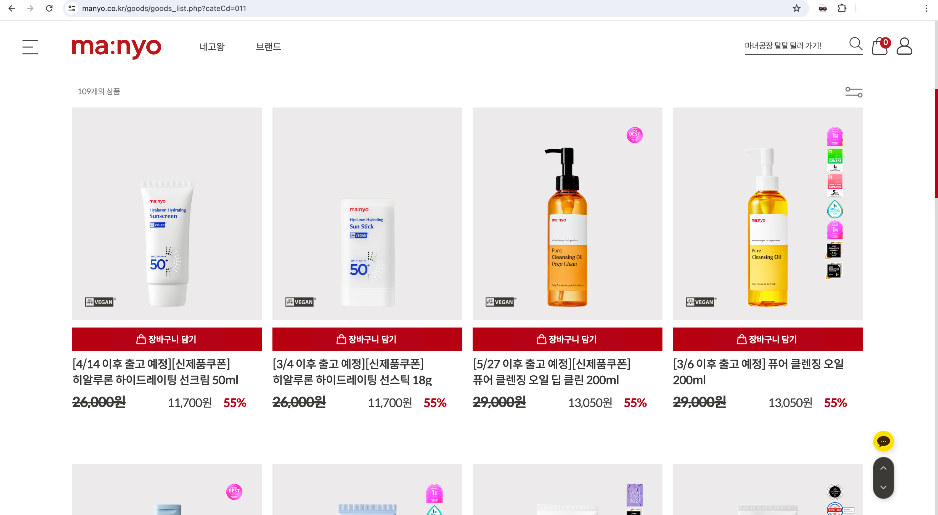 cafe24 상품분류 도메인 구조 : https://도메인/product/list.html?cate_no=카테고리넘버링코드